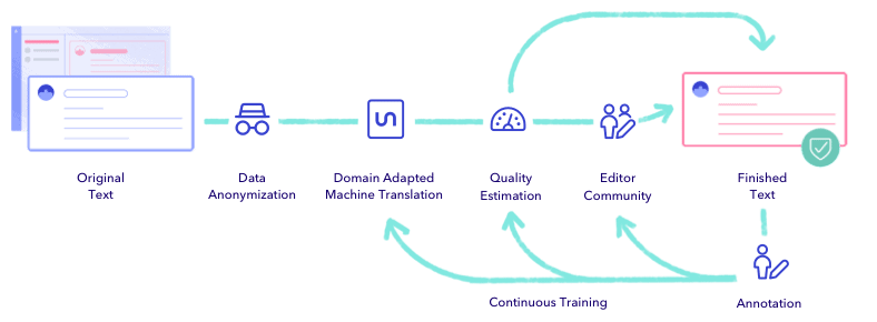 - Pseudonymization All content passing through Unbabel’s Translation Pipeline from its Clients goes through an automated pseudonymization process which removes Personal Data and restores it before delivery. No Personal Data is shared with Community. Where a translation is used for the retraining of machine learning engines, data is retrained in an anonymized format.